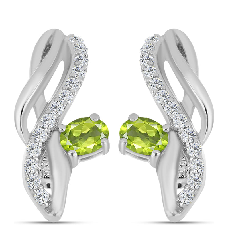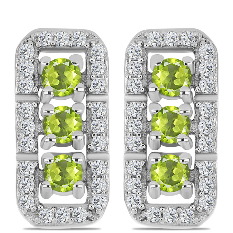 Stříbrné Náušnice s Čchang-pajským Peridotem a Bílým Topazem
