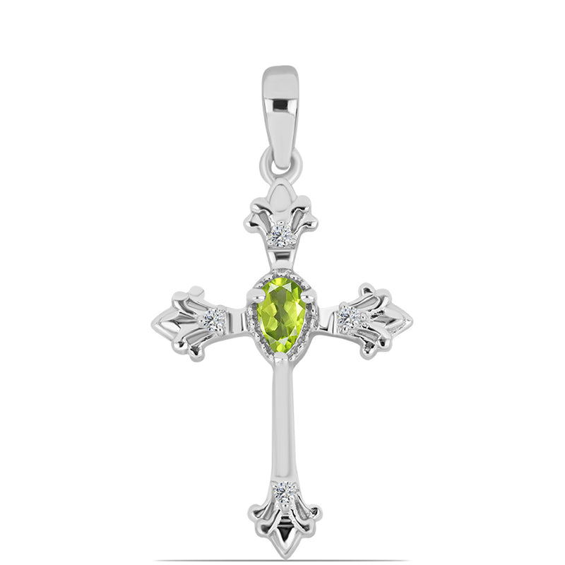 Kříž Stříbrný Přívěsek s Čchang-pajským Peridotem a Bílým Topazem