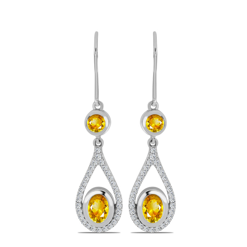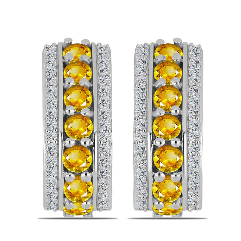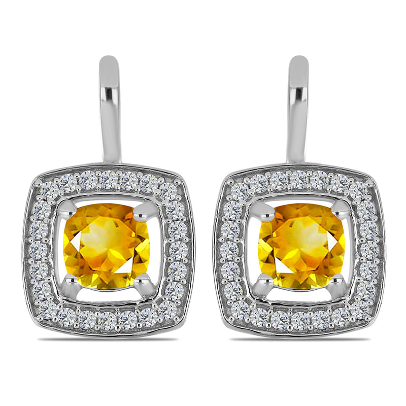 Stříbrné Náušnice s Uralským Citrínem a Bílým Topazem
