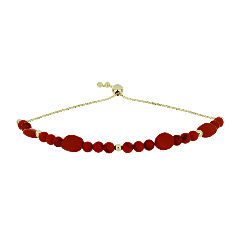 Pozlacený Stříbrný Náramek s Červeným Houbovým Korálem