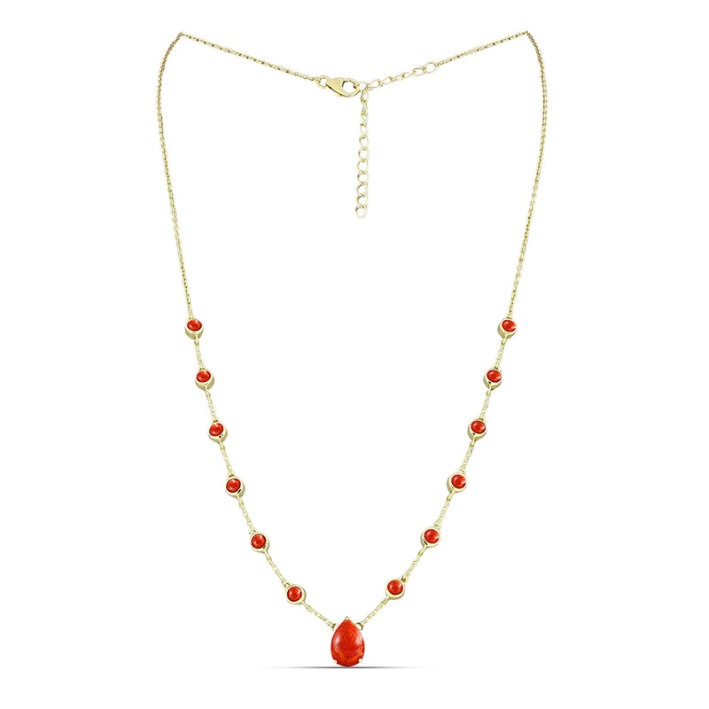 Pozlacený Stříbrný Náhrdelník s Červeným Houbovým Korálem