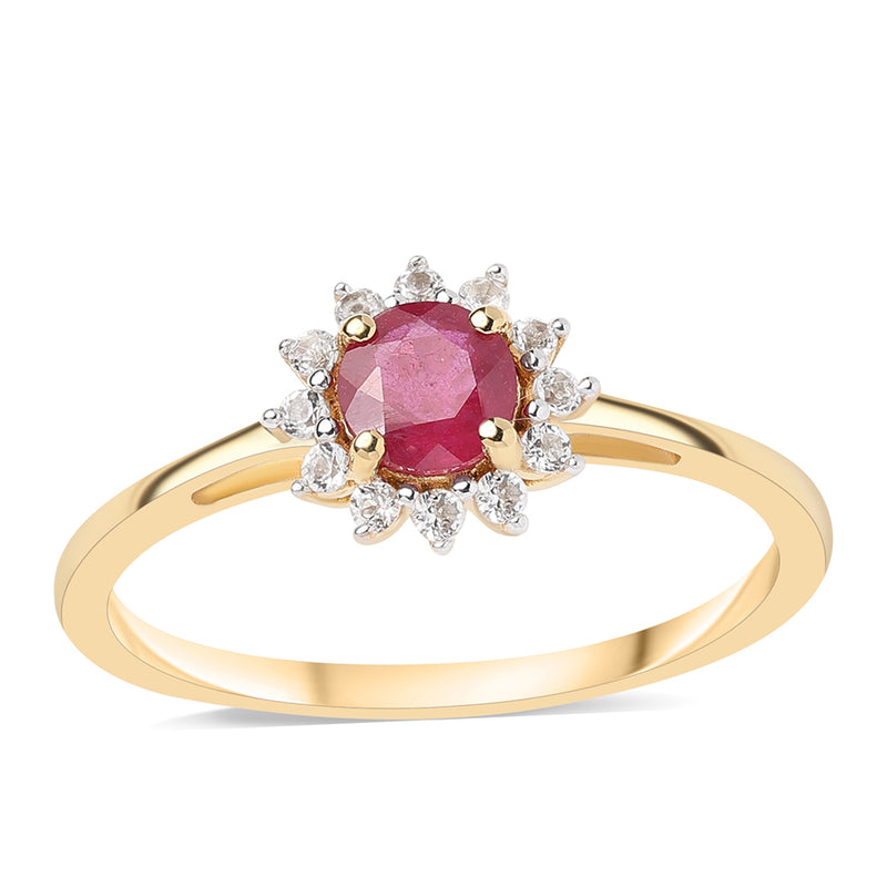 Pozlacený Stříbrný Prsten s Mozambickým Rubínem a Bílým Topazem