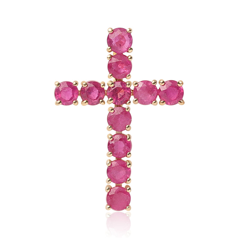 Kříž Pozlacený Stříbrný Přívěsek s Mozambickým Rubínem