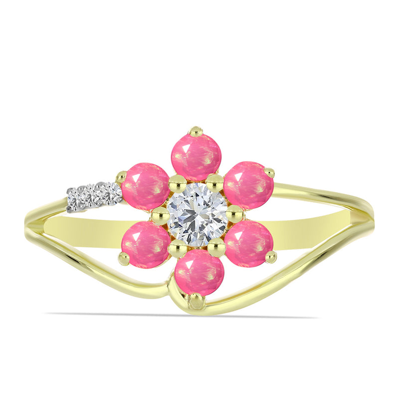 Pozlacený Stříbrný Prsten s Růžovým Etiopským Opálem z Lega Dembi a Bílým Topazem