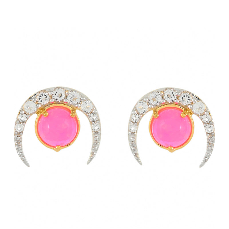 Pozlacené Stříbrné Náušnice s Etiopským Neónově Růžovým Opálem a Bílým Topazem