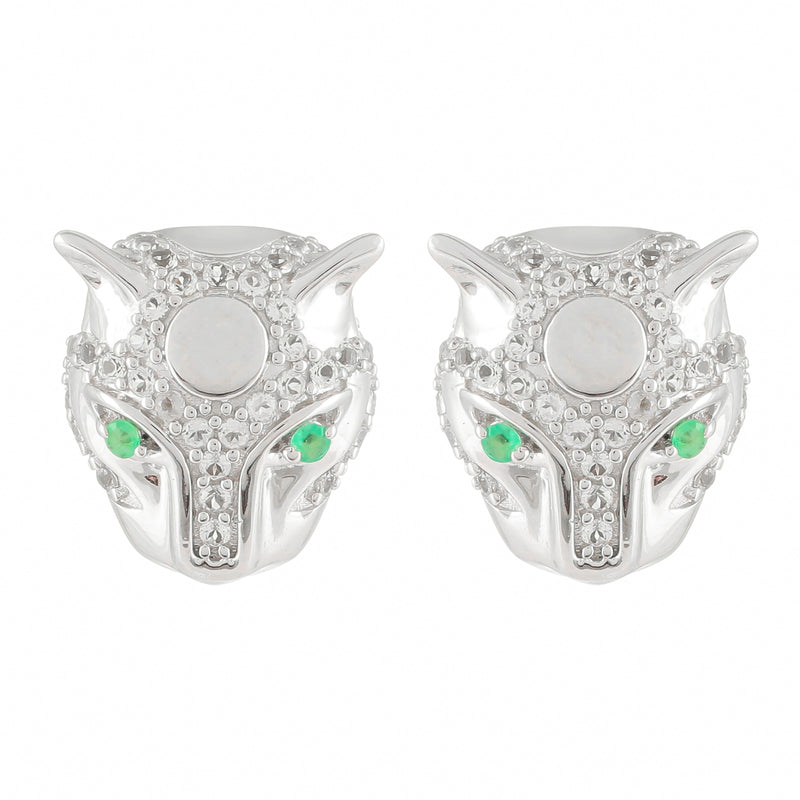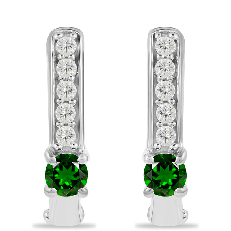 Stříbrné Náušnice s Chromovým Diopsidem a Bílým Topazem