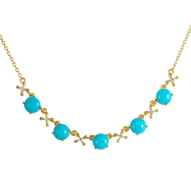 Pozlacený Stříbrný Náhrdelník s Tyrkysem Sleeping Beauty a Bílým Topazem