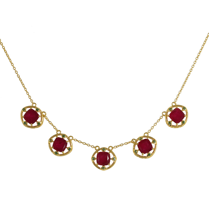 Pozlacený Stříbrný Náhrdelník s Růžovým Křemenem a se Zeleným Topazem