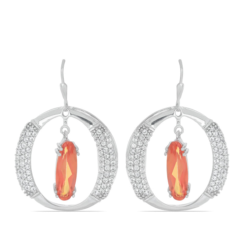 Stříbrné Náušnice s Padparadscha Křemenem a Bílým Topazem