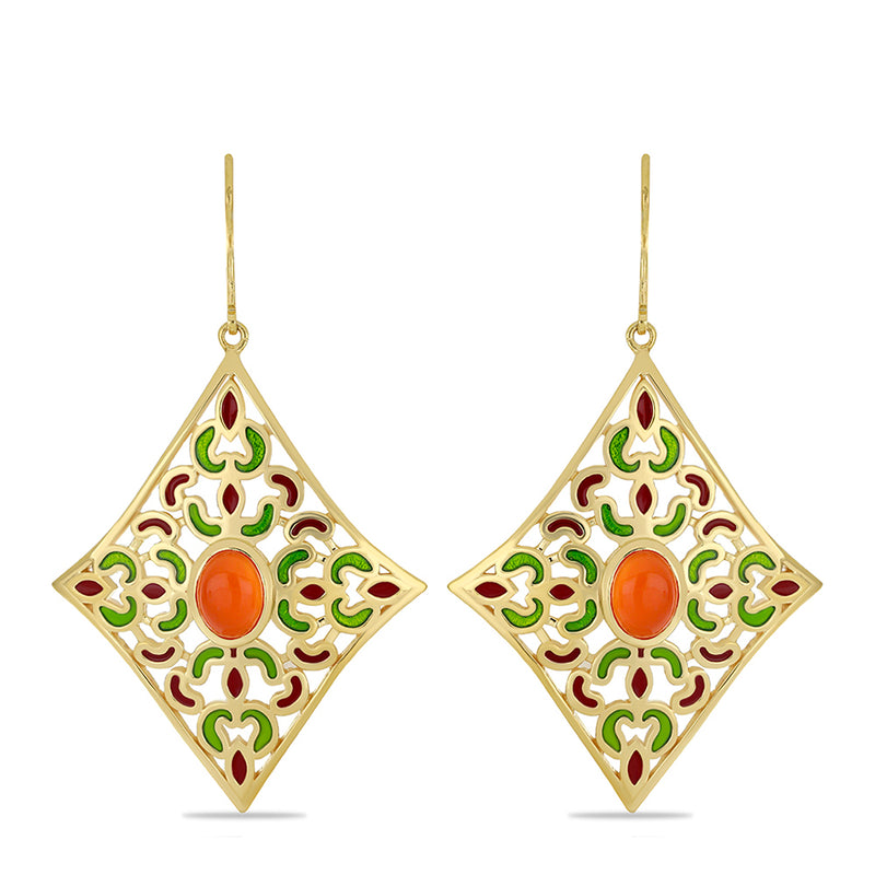 Pozlacené Stříbrné Náušnice se Smaltem a Červeným Achátem