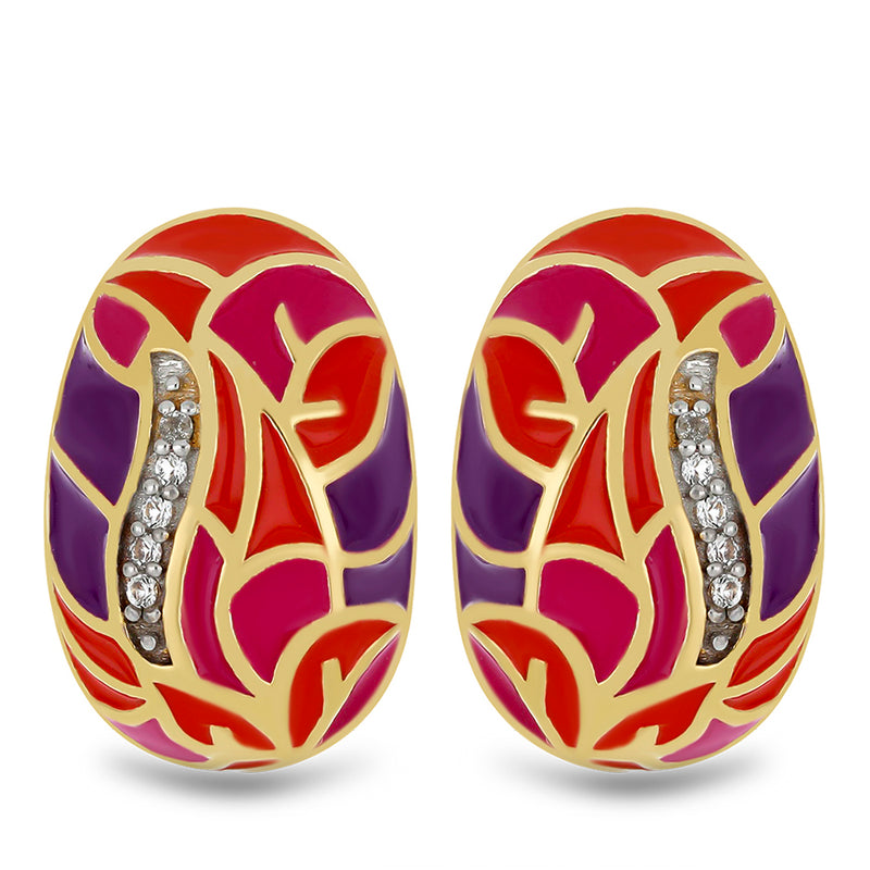 Pozlacené Stříbrné Náušnice se Smaltem a Bílým Topazem