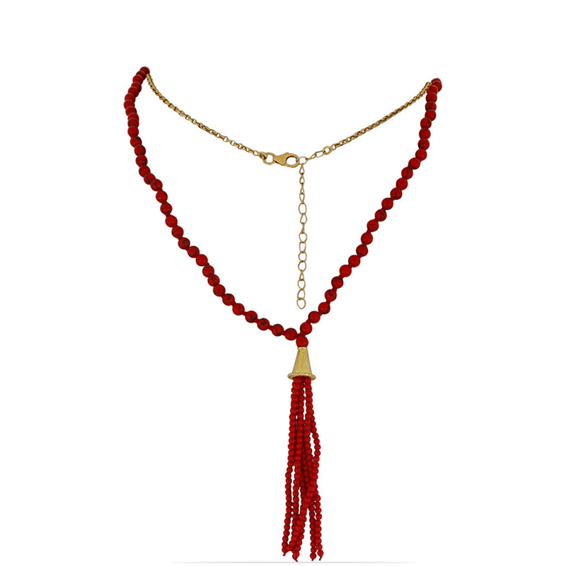 Pozlacený Stříbrný Náhrdelník s Červeným Houbovým Korálem