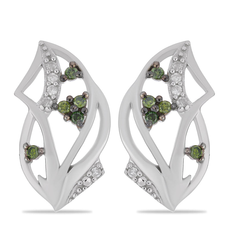 Stříbrné Náušnice se Zeleným Diamantem a Bílým Diamantem