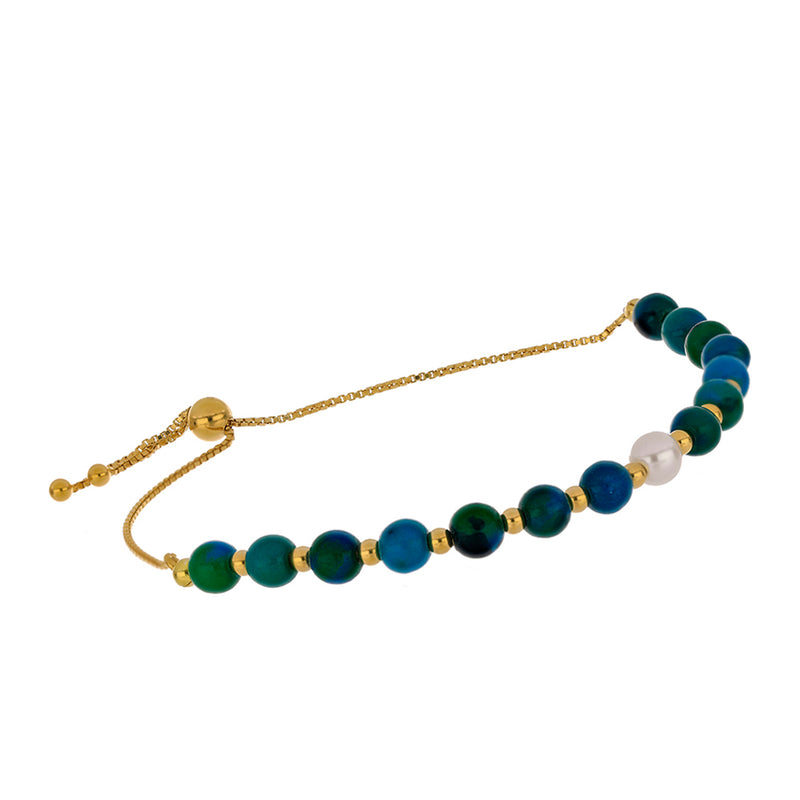 Pozlacený Stříbrný Náramek s Chryzokolem a Bílou Sladkovodní Perlou