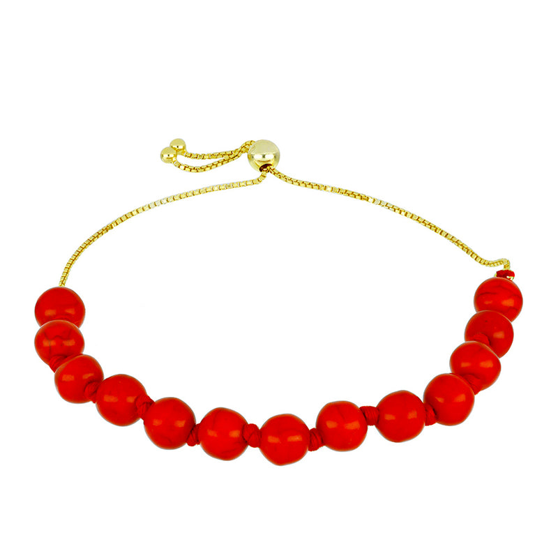 Pozlacený Stříbrný Náramek s Červeným Korálem