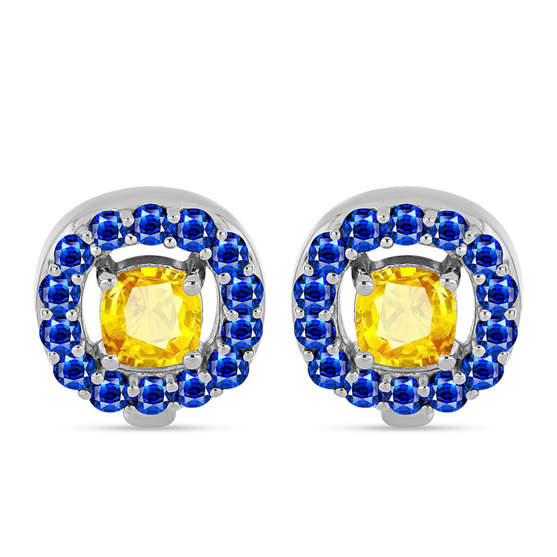 Stříbrné Náušnice se Žlutým Safírem a Australským Modrým Safírem