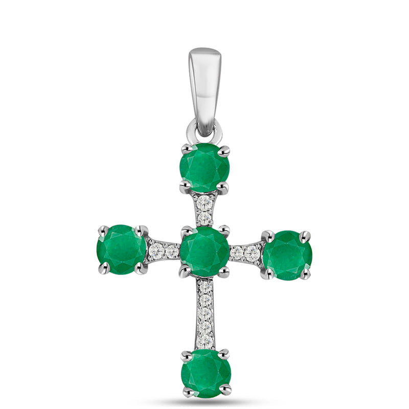 Kříž Stříbrný Přívěsek s Brazilským Smaragdem a Bílým Topazem