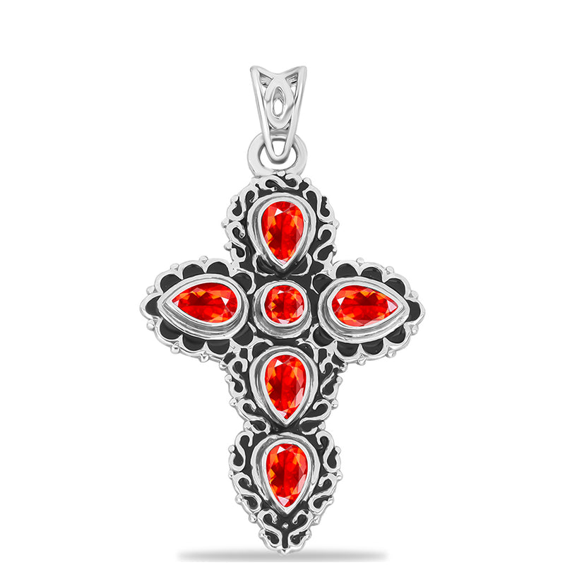 Kříž Stříbrný Přívěsek s Etiopským Červeným Opálem z Lega Dembi