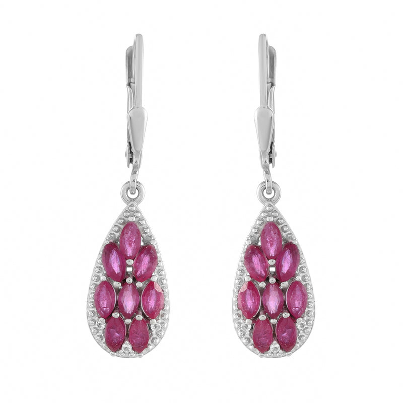 Stříbrné Náušnice s Thajským Rubínem a Bílým Topazem