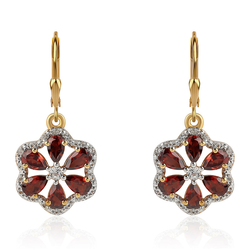 Pozlacené Stříbrné Náušnice s Bartonským Granátem a Bílým Topazem