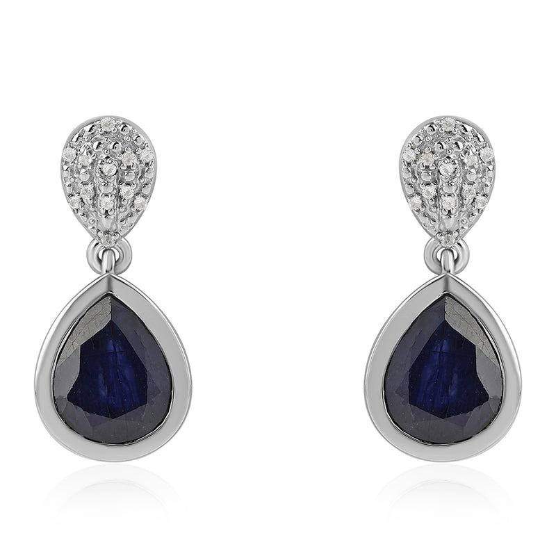 Stříbrné Náušnice s Australským Modrým Safírem a Bílým Topazem