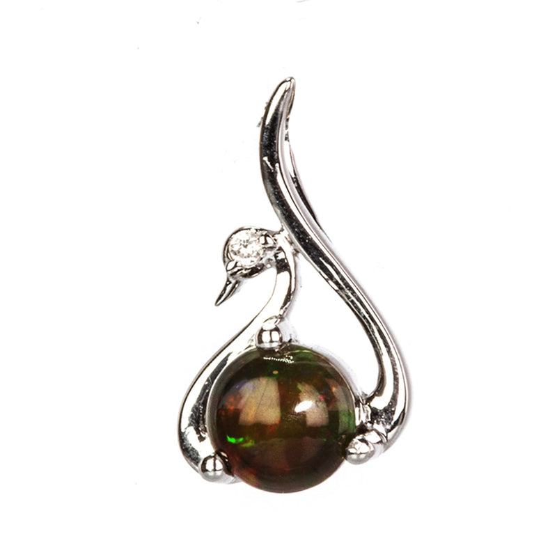 Stříbrný Přívěsek s Půlnočně Černým Etiopským Opálem z Lega Dembi a Bílým Topazem