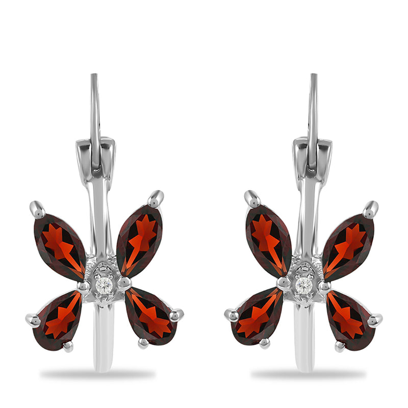 Stříbrné Náušnice s Bartonským Granátem a Bílým Topazem