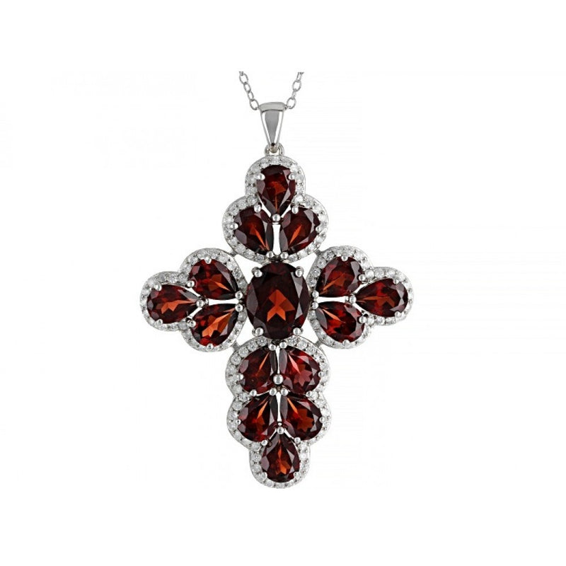 Kříž Stříbrný Přívěsek s Bartonským Granátem a Bílým Topazem