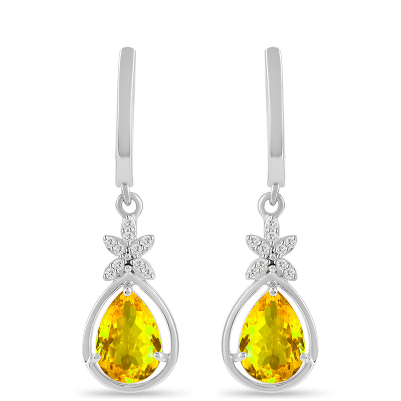 Stříbrné Náušnice s Uralským Citrínem a Bílým Topazem