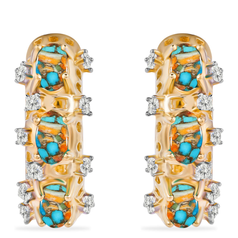 Pozlacené Stříbrné Náušnice s Ústřicovým Tyrkysem a Bílým Topazem