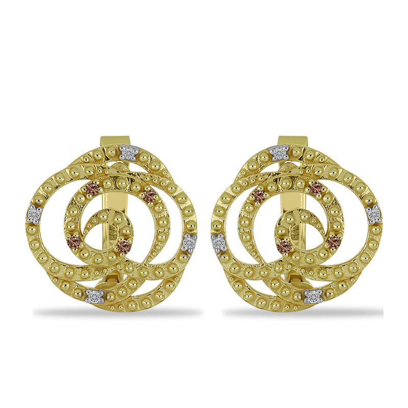 Pozlacené Stříbrné Náušnice s Champagne Diamantem a Bílým Diamantem