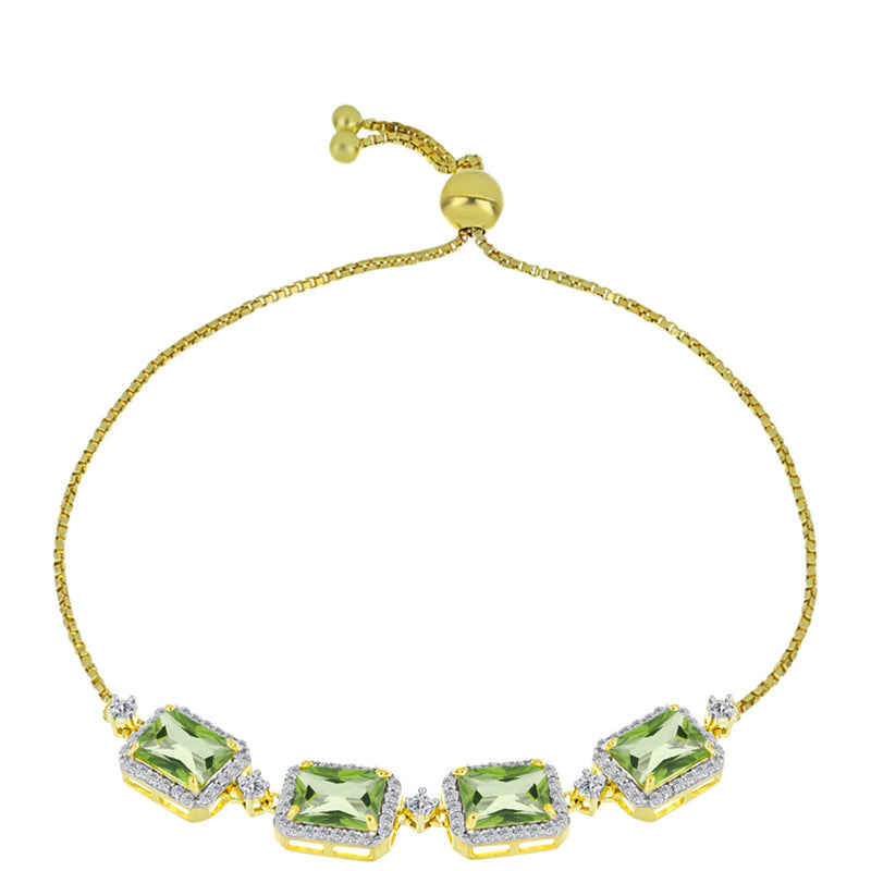 Stříbrný Náramek s Kapradinově Zeleným Křemenem a Bílým Topazem