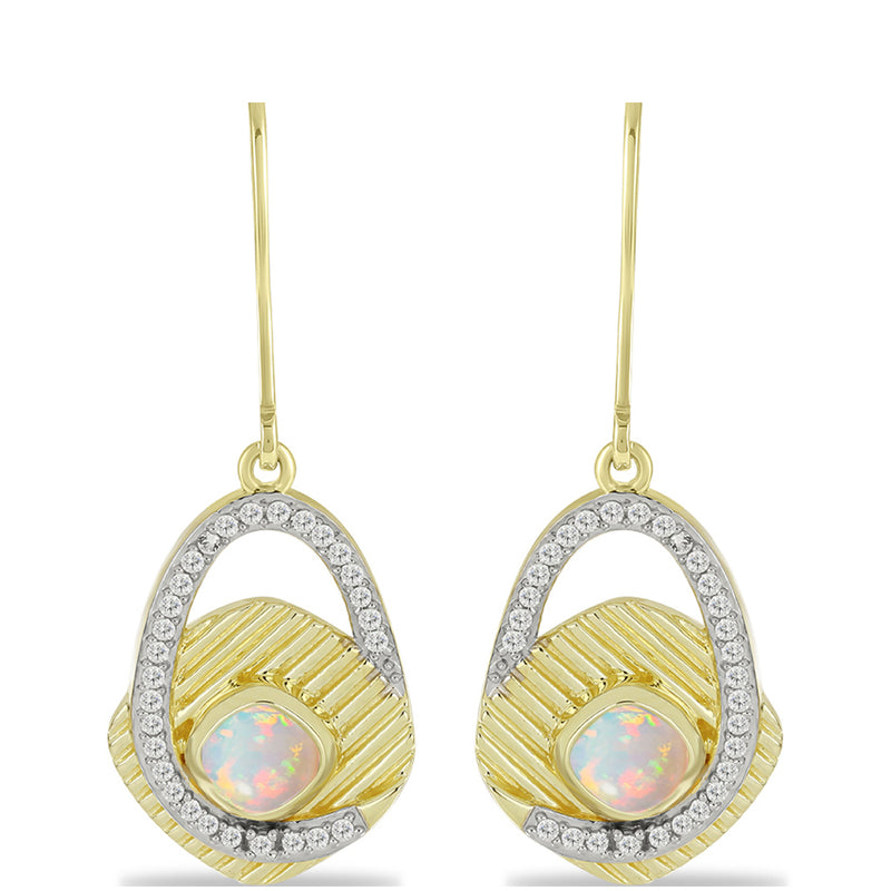 Pozlacené Stříbrné Náušnice s Welo opálem a Bílým Topazem