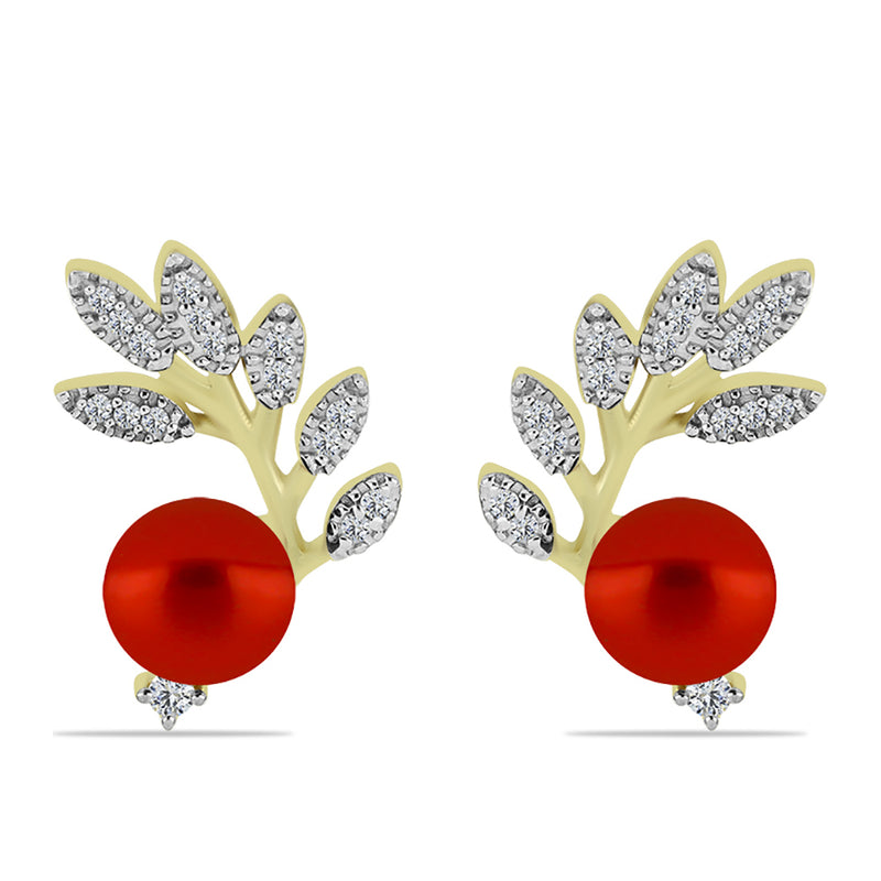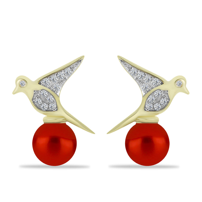 Pozlacené Stříbrné Náušnice s Červená sladkovodní Perlou a Bílým Topazem