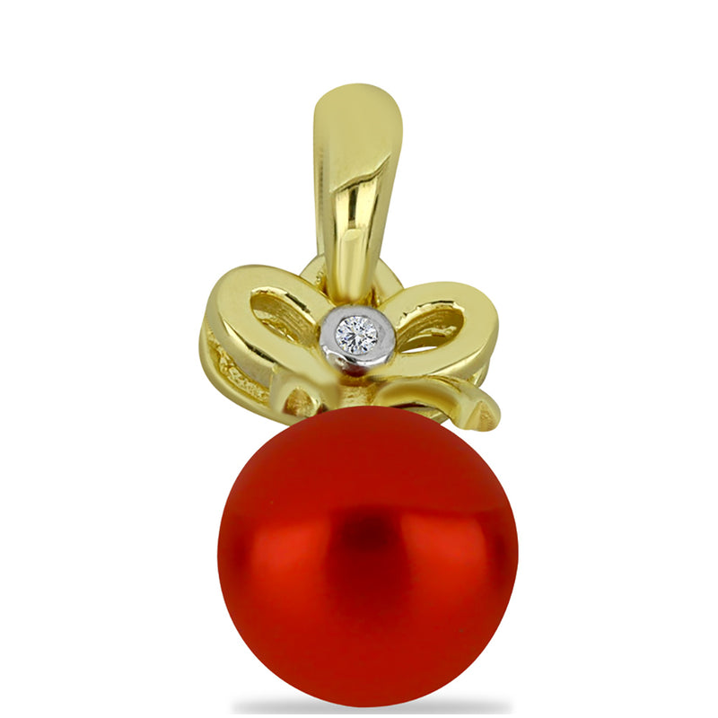 Pozlacený Stříbrný Přívěsek s Červená sladkovodní Perlou a Bílým Topazem