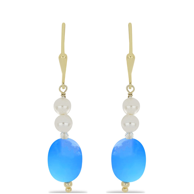 Pozlacené Stříbrné Náušnice s Aqua Chalcedonem a Bílým Křemenem