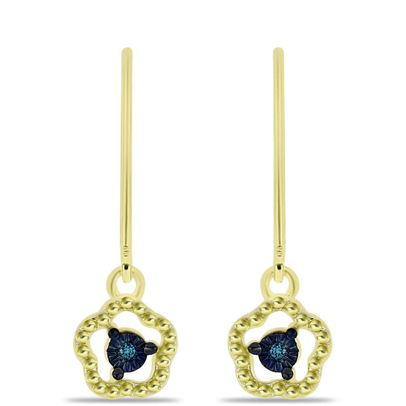 Pozlacené Stříbrné Náušnice s Modrým Diamantem