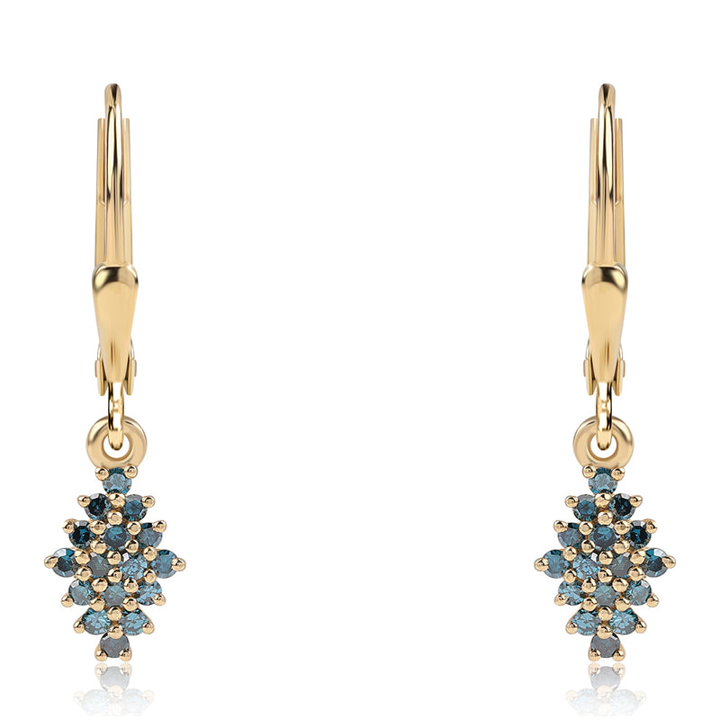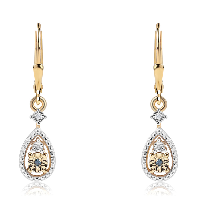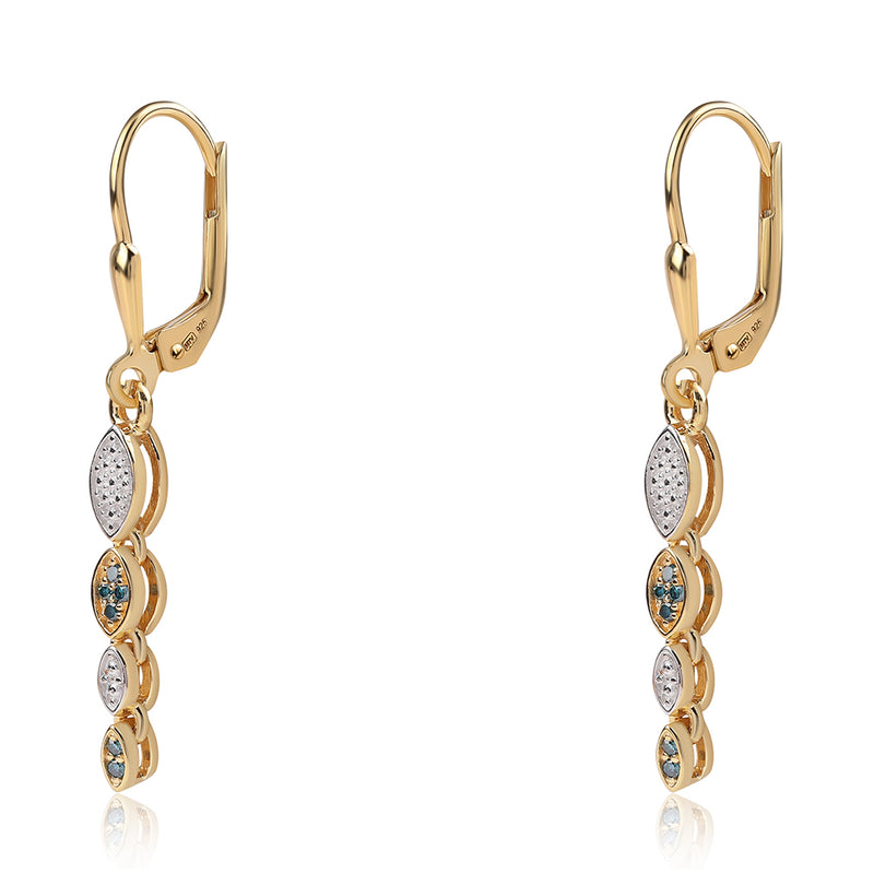 Pozlacené Stříbrné Náušnice s Modrým Diamantem a Bílým Diamantem
