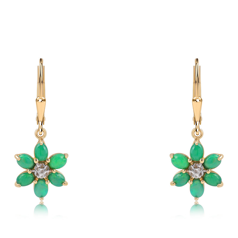 Pozlacené Stříbrné Náušnice se Zeleným Etiopským Opálem z Lega Dembi a Bílým Topazem