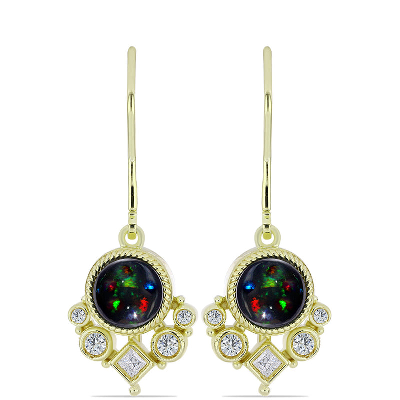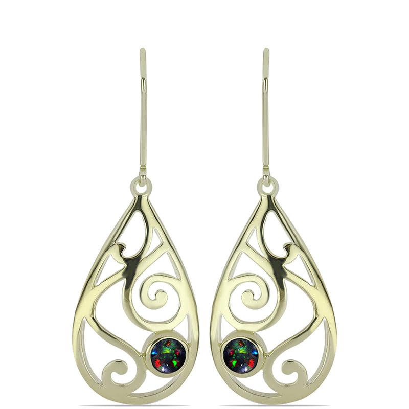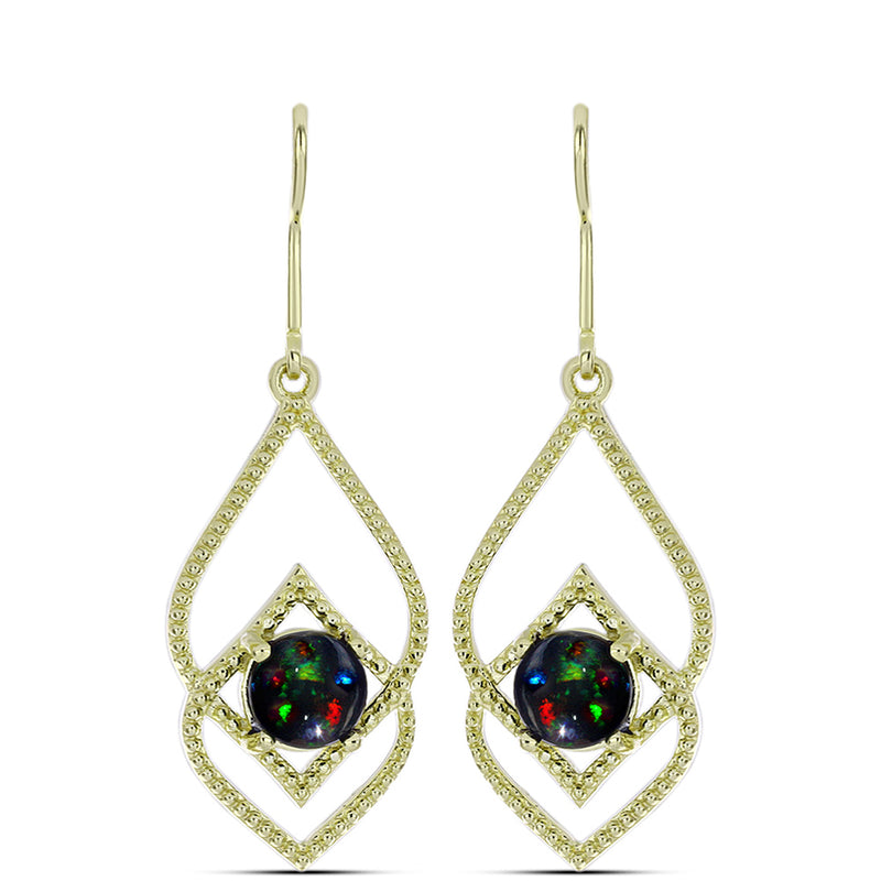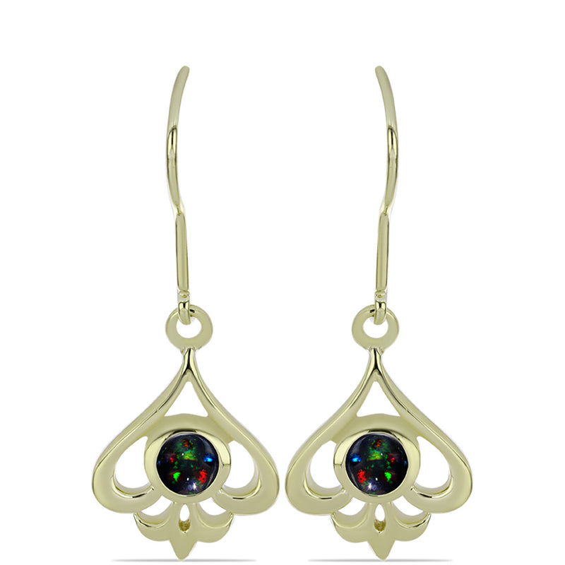 Pozlacené Stříbrné Náušnice s Půlnočně Černým Etiopským Opálem z Lega Dembi