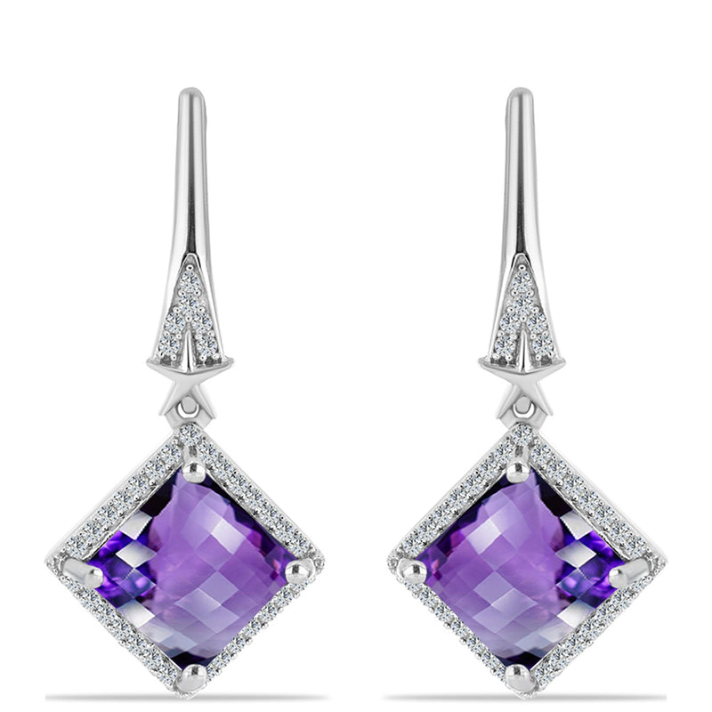 Stříbrné Náušnice s Marockým Ametystem a Bílým Topazem