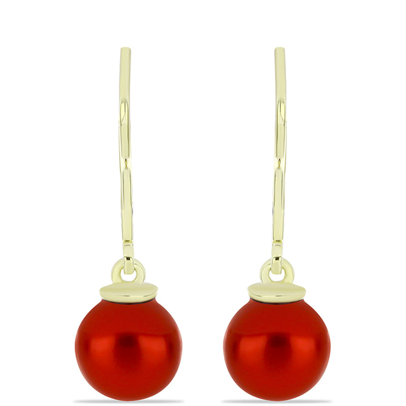 Pozlacené Stříbrné Náušnice s Červená sladkovodní Perlou