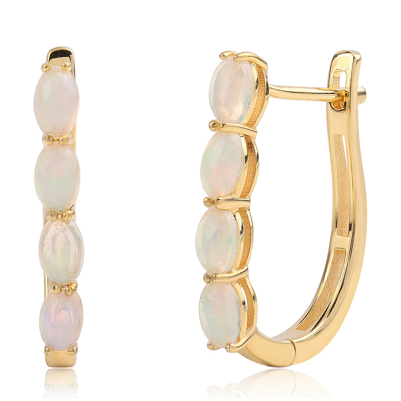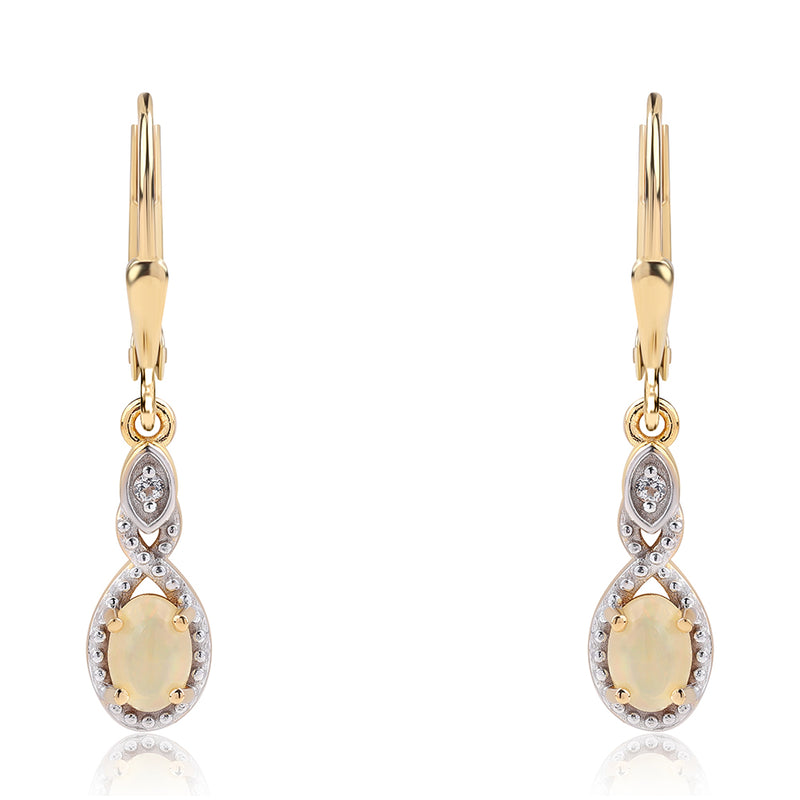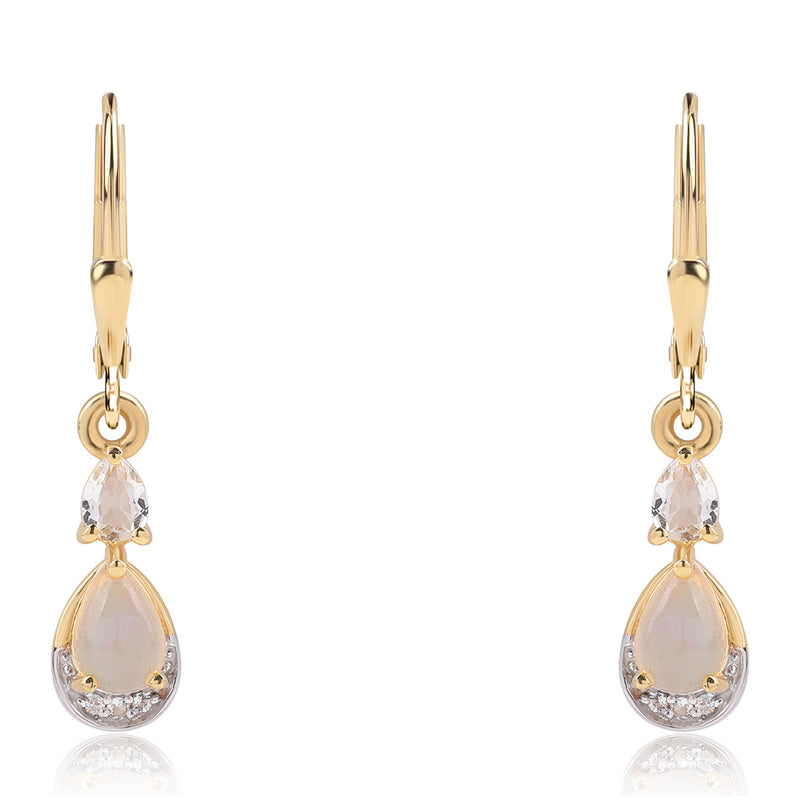 Pozlacené Stříbrné Náušnice s Etiopským Opálem z Lega Dembi a Bílým Topazem