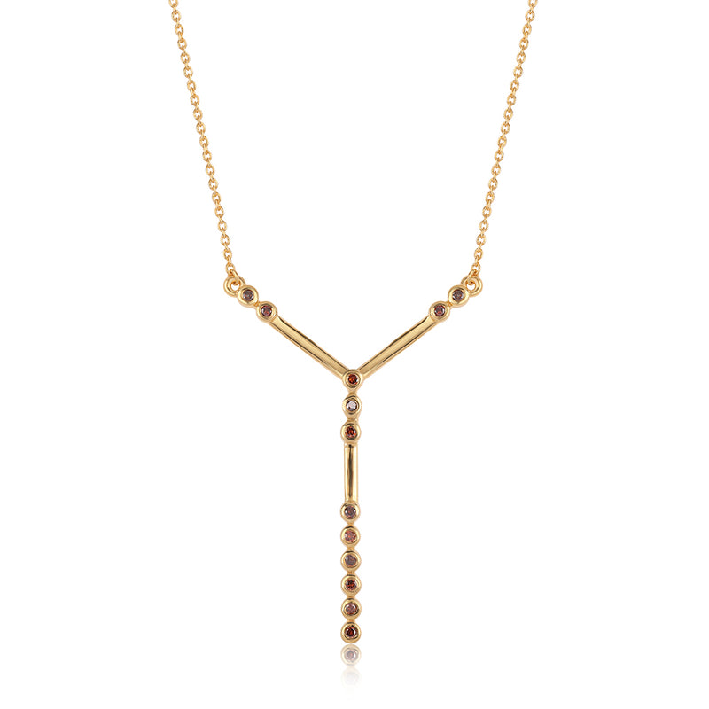 Pozlacený Stříbrný Náhrdelník s Červeným Diamantem