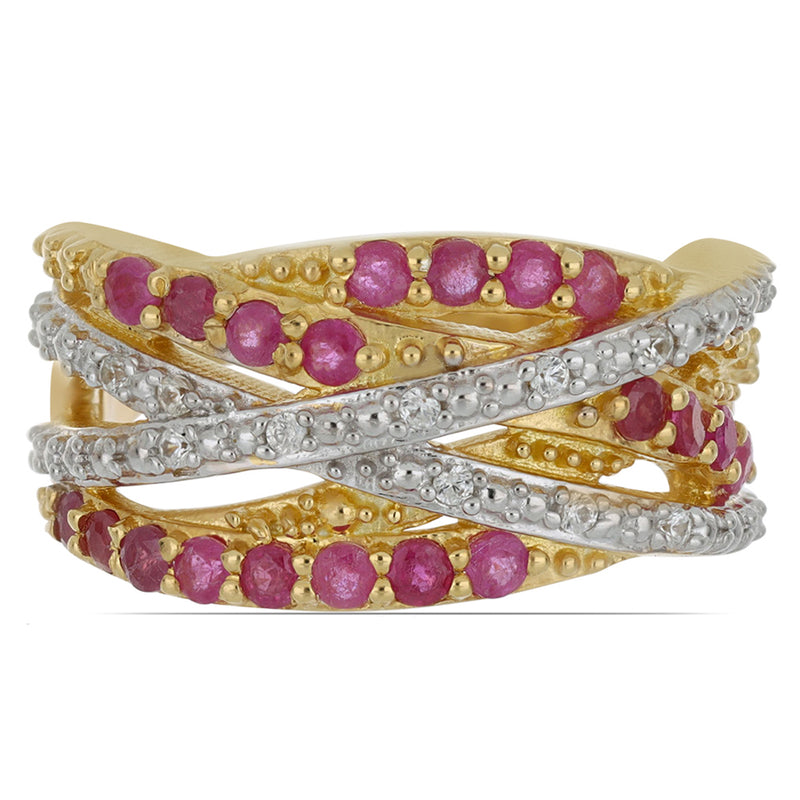 Pozlacený Stříbrný Prsten s Madagaskarským Rubínem a Přírodním Bílým Zirkonem