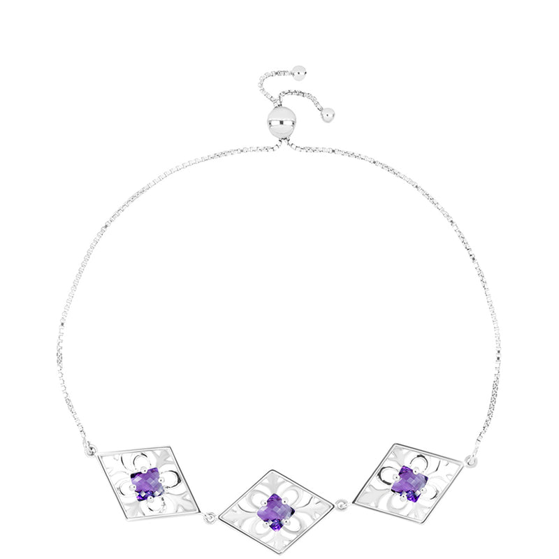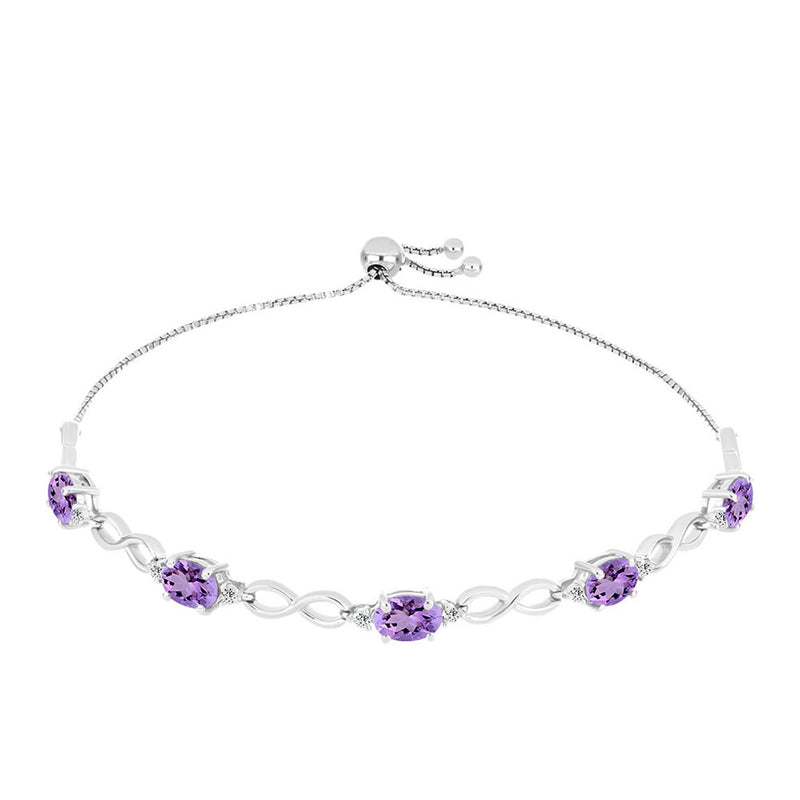 Stříbrný Náramek s Rose de France Ametystem a Bílým Topazem