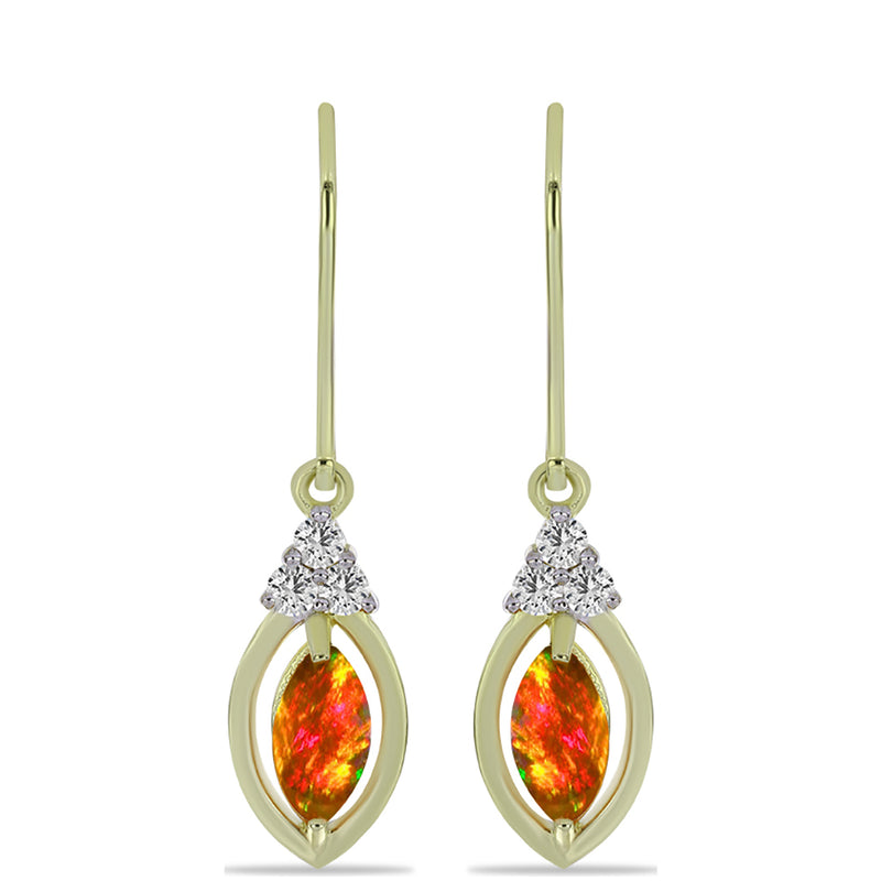 Pozlacené Stříbrné Náušnice s Americkým Ohnivým Opálem a Bílým Topazem