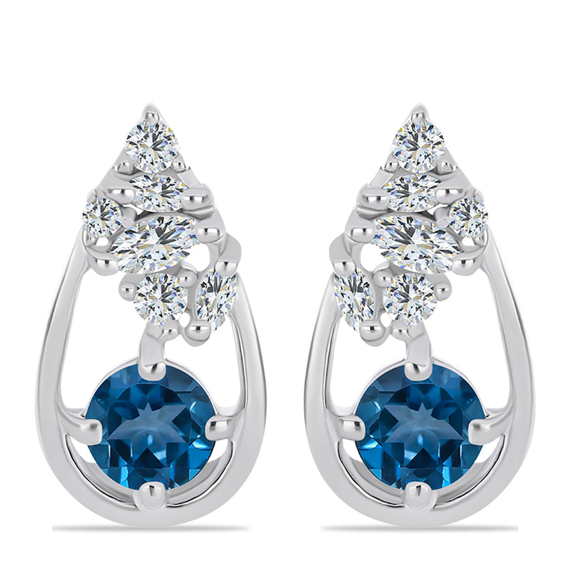Stříbrné Náušnice s Londýnským Modrým Topazem a Bílým Topazem