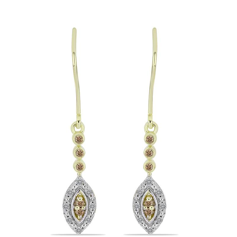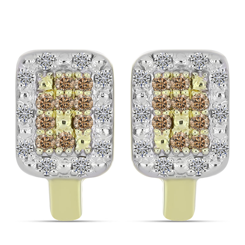 Pozlacené Stříbrné Náušnice s Champagne Diamantem a Bílým Diamantem