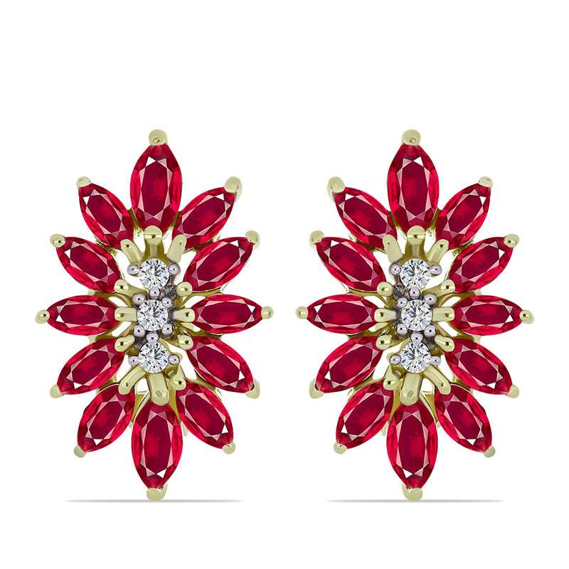 Pozlacené Stříbrné Náušnice s Madagaskarským Rubínem a Bílým Topazem